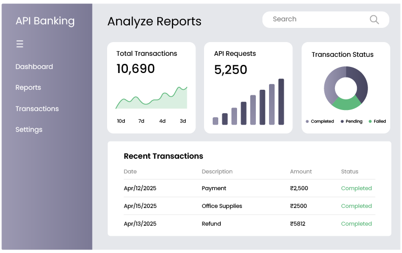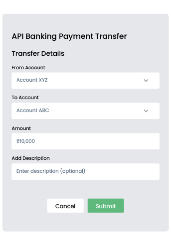 Connect your platform effortlessly using our API endpoints, ensuring smooth, secure, and reliable banking workflows.