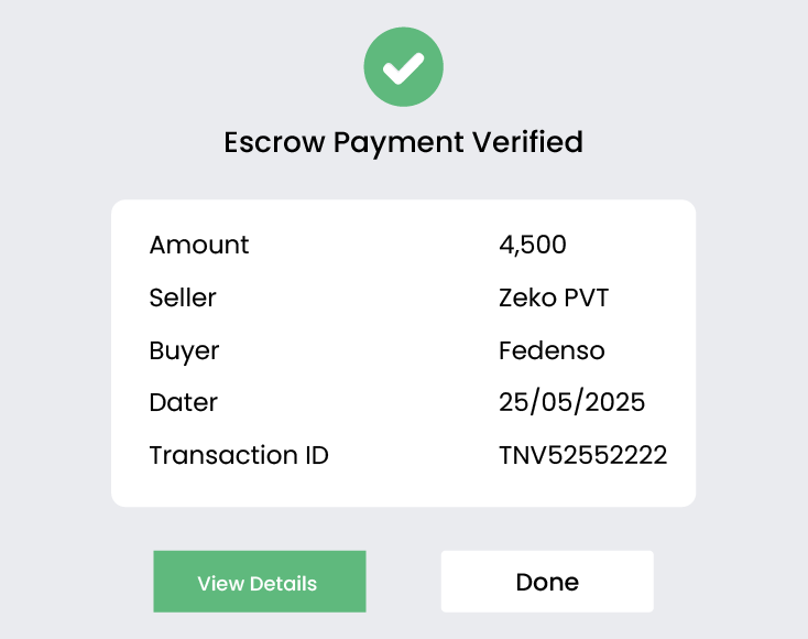 Escrow validates every payment milestone against agreed terms. Buyers and sellers both receive real-time updates, ensuring complete compliance. This step guarantees accountability before any fund movement, reducing transactional errors.